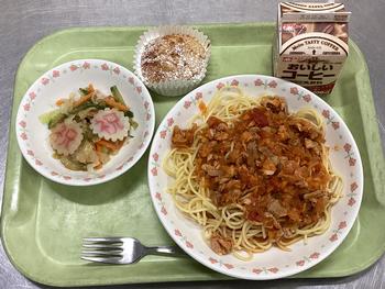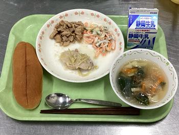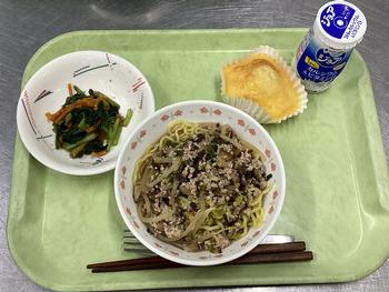 メニュー 【台湾料理】 タンツーメンとは、台湾発祥の汁入り麺料理です。豚ひき肉やえび、干し椎茸、にんにくなどを使ったあっさりしたスープが特徴です。台湾風カステラは、フワフワでやわらかく、軽い食感が特徴です。今日は給食用に作り方をアレンジしました。 |