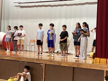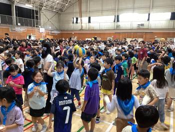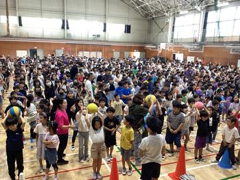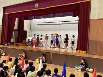 今回の集会では他学年と協力してボール送りを行いました。どうすれば次の人に早く正確に渡すことができるかを考え、子供たちは楽しそうに交流をすることができました。
