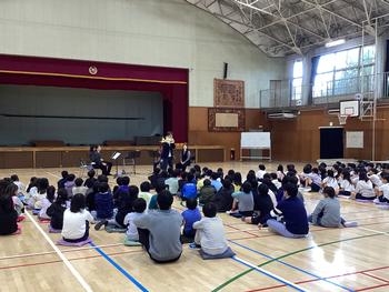 本日、木管五重奏団「クインテット アッシュ」の皆様を招いて、アウトリーチコンサートが行われました。体育館には素敵な音色が響き、最後には4年生の子供たちが演奏に合わせて美しく校歌を歌うことができました。
