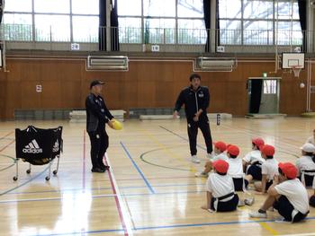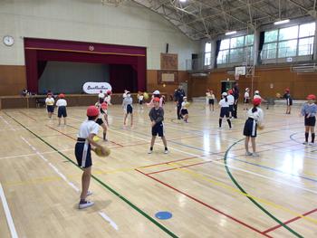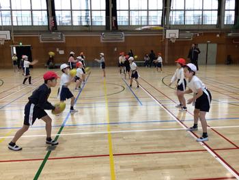 RICOH 「BlackRamsTokyo」 から3名のコーチをお招きし、体育のタグラグビーにつながるパスやランを中心に教えていただきました。子供たちは、今回のテーマ「挑戦」「協力」に向けて、楽しみながら活動することができました。