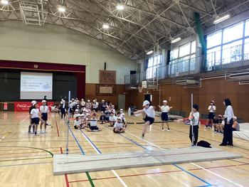 昨年11月に行われました東京2025デフリンピックに走り高跳び日本代表として出場された高居千紘選手をお招きし、聴覚障害や手話、高跳びの体験などの交流を行いました。子供たちは総合的な学習の時間で「多様性」について学習しています。見たり、聞いたりするだけでなく、実際に体験することを通して、工夫や難しさを知ることができ、実りの多い時間を過ごすことができました。