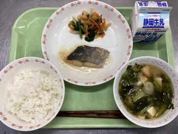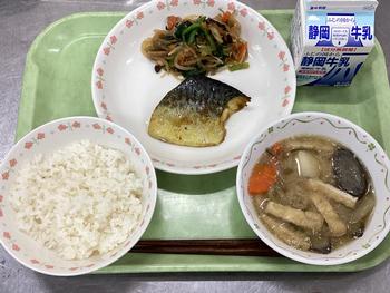 メニュー 【6-3彩り和食献立】 6年3組が家庭科の授業で、栄養素の勉強をし、献立をたててくれました。和食の基本である「一汁三菜」や栄養バランスを学び、旬の食材を取り入れた献立です。学校給食なので、ご飯(主食)を中心として味噌汁などの「汁物」1品と、主菜(メイン)1品、副菜(サブ)1品を組み合わせた日本古来の和食の基本スタイルの「一汁二菜」です。 |