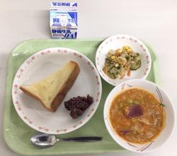 小倉トースト 牛乳 ボルシチ ごまだれサラダ