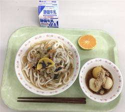 月見かけうどん 牛乳 月見団子 菊花みかん