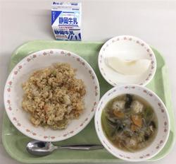 キムチチャーハン 牛乳 白菜と肉団子のスープ 新高梨