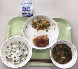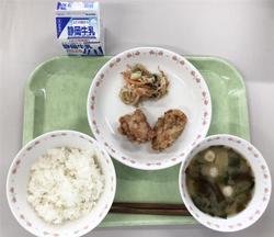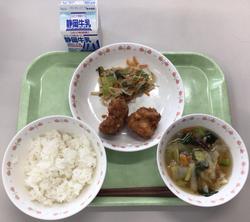 ご飯 牛乳 油淋鶏 野菜炒め 白菜スープ