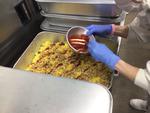 給食では約700食作るので、ごはんを卵で包むことができないため