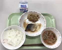 ご飯 牛乳 さばの味噌煮 切り干し大根の煮つけ そうめん入りすまし汁