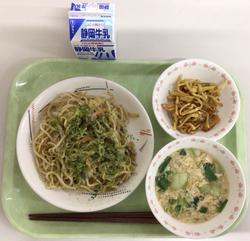 ソース焼きそば 牛乳 スパイシーポテト チンゲン菜スープ