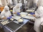 今日は、給食室でパン生地から手作りして切り分けて作りました。