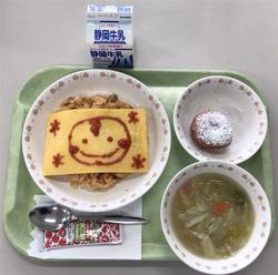お絵描きオムライス 牛乳 キャベツスープ 豆腐ドーナツ