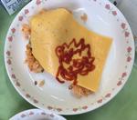 「チキンライス」に「うす焼き卵」をのせて食べる「オムライス風」となっています。