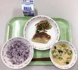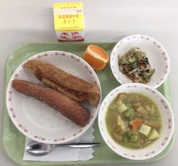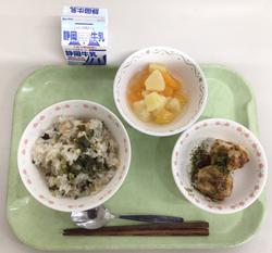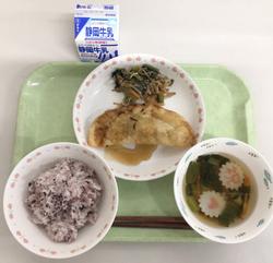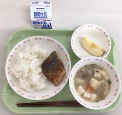 ご飯 牛乳 しいらのにんにくバターしょう油かけ 豚汁 皮つきりんご