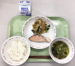 ご飯 牛乳 鮭の塩麴焼き 煮びたし 味噌汁