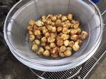 1つ1つ丸めて「小麦粉・水」で作った衣につけて油で揚げました。