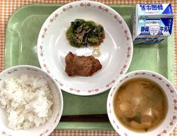 ご飯 鶏肉の香味焼き 小松菜のからし和え とうふのみそ汁 牛乳