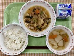 ご飯 中華肉じゃが かぶのスープ 牛乳