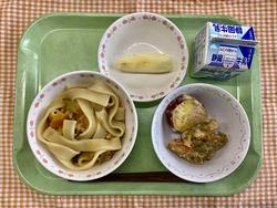 ほうとう 天ぷら(かしわ・さつまいも) りんご 牛乳