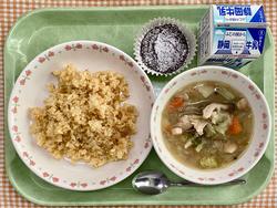 キャロットピラフ チキンポトフ ガトーショコラ 牛乳