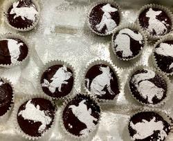 今日は「ルルとララのガトーショコラ」との読書コラボということで、調理員さんがおまけのガトーショコラに、うさぎやリス、鹿などの森の仲間たちの型を置いて粉砂糖をふるってくれました。