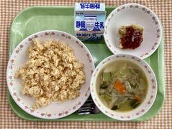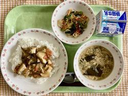 家常豆腐丼 白菜のじゃこ浸し 中華風たまごスープ 牛乳