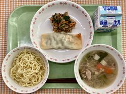 中華丼 ワンタンスープ いよかん 牛乳