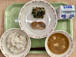 ごはん 魚の香味焼き 磯香あえ どさんこ汁 牛乳
