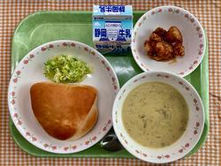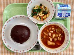 チョコビスキュイパン 温野菜 ポークビーンズ 牛乳