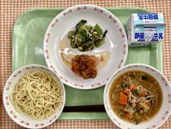 みそラーメン ユーリンチー 小松菜の中華風サラダ 牛乳