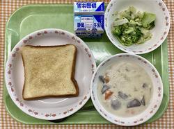 メープルトースト グリーンサラダ 里芋のクリームシチュー 牛乳