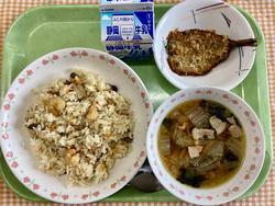 ご飯 炒り鶏 実だくさん汁 牛乳