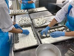 うどんには、満月にいるうさぎをモチーフにしたかまぼこをちらし、デザートにはお月見団子を手作りしました。