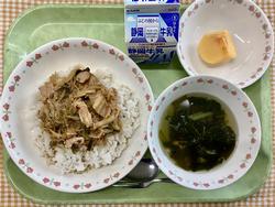豚キムチ丼 青菜のさっぱりスープ かき 牛乳