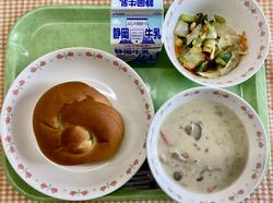 あしたばパン 温野菜 いろいろきのこのクリームスープ 牛乳