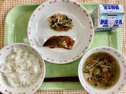 ご飯 さばの味噌煮 野菜の梅しょう油和え 沢煮椀 牛乳