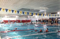 施設に着くと、暖かい室温に安堵の声があがり、安心してプールに入っていました。
