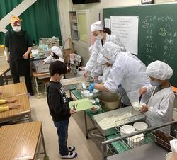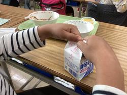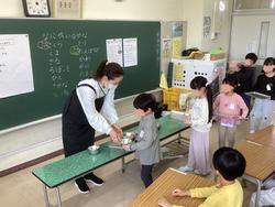 さあ、実際に給食の準備です。給食当番もばっちり!