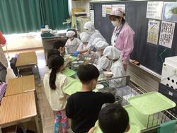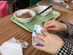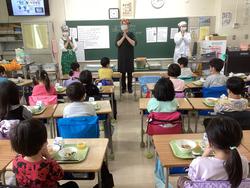 今日から給食が始まりました。1年生にとっては小学校生活初めての給食です。