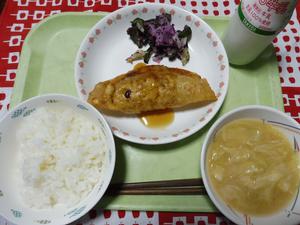 ≪学校におけるおさかな消費緊急事業≫ ご飯 牛乳 鹿児島県産かんぱちの味噌バター焼き きゃべつの塩昆布和え けんちん汁 |