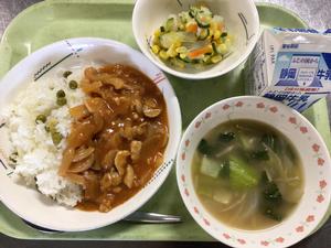 | 山路きびご飯 牛乳 鶏肉と大根の旨煮 すまし汁 |