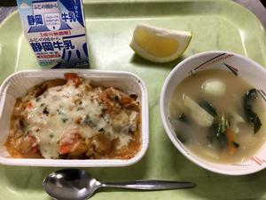 デミソースドリア 牛乳 野菜スープ 果物(河内晩柑) |