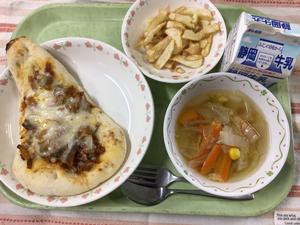ミートナンピザ 牛乳 フライドポテト キャベツスープ |