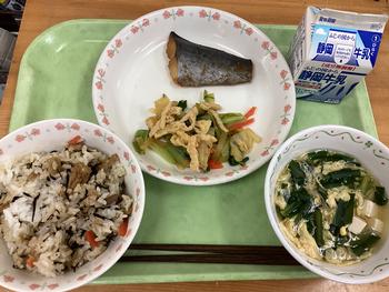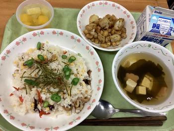 ごまご飯 わかさぎと野菜の揚げ煮 切り干し大根の甘酢あえ みそ汁 |