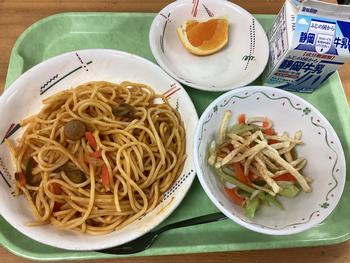 スパゲティナポリタン あげじゃがサラダ 果物 |