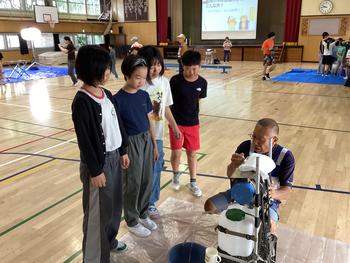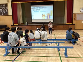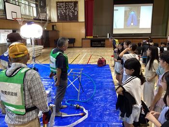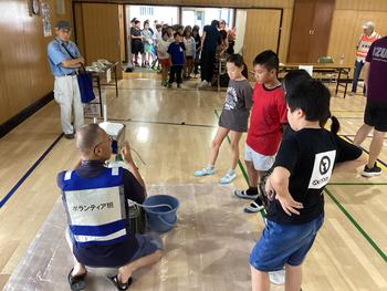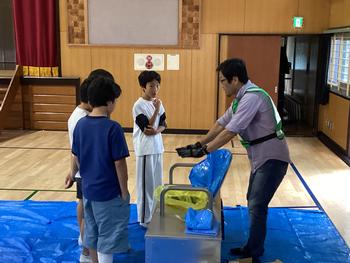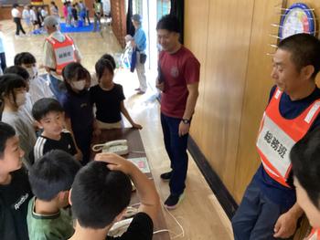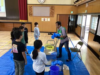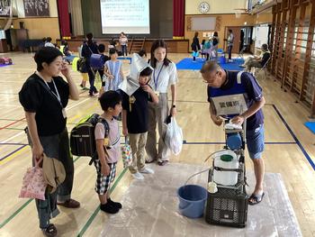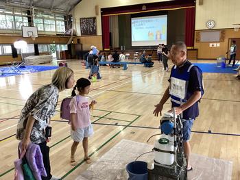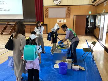 ここ数年続けている、こだま幼稚園との合同引き渡し訓練の他に、今年度の目玉として、避難所を開設していただき、4・5年生の子供たちは授業として、引き渡し後には親子で体験をさせてもらいました。