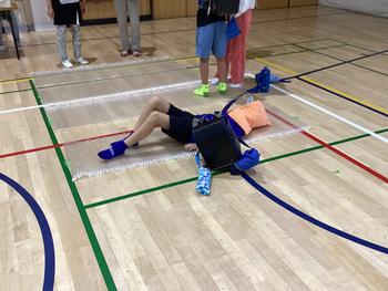 災害が起こってしまった際に、避難所としてどのような生活をするのか、どのような設備が整っているかなど、実際の道具を見ながら説明していただきました。