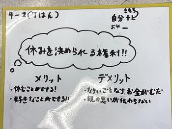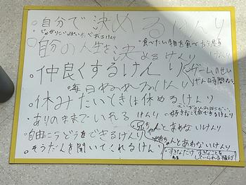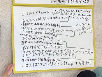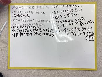 さらに、現在守られていないと感じる権利についても考え、自分たちが今後どのようにしていけばよいかについて、意見を交わし合いました。