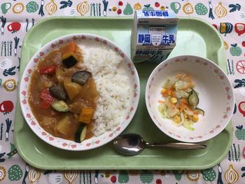 カラフルなつやさいのカレーライス レモンドレッシングサラダ ぎゅうにゅう
