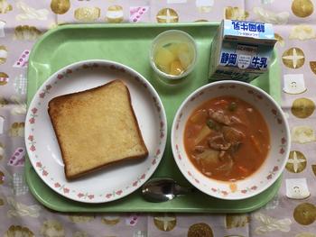 たらこトースト ポークシチュー フルーツサイダーゼリー ぎゅうにゅう
