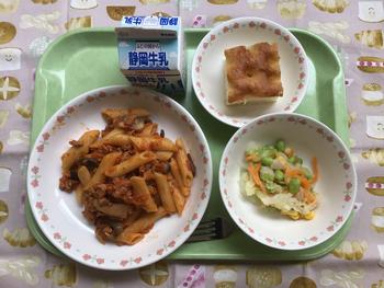 ペンネ・ボスカイオーラ てづくりフォカッチャ えだまめサラダ ぎゅうにゅう